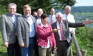 Nach ausführlichen Erläuterungen durch Edeltrud Bayer (Leiterin des LBM Trier) und ihrem Stellvertreter Hans-Michael Bartnick sowie Besichtigung einiger Bauabschnitte traf sich die Delegation auch mit Vertreterinnen und Vertretern der Bürgerinitiative gegen den Hochmoselübergang.